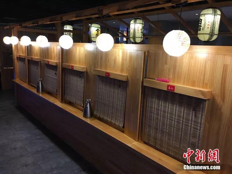 先日、武漢のある「おひとりさま」レストランを取材したところ、この日本風(fēng)の鍋料理店では、レストランを「島區(qū)」、「隠區(qū)」、「尋區(qū)」、「無(wú)界」の四つのエリアに分けている。そのうち、「おひとりさま」エリアは主に「尋區(qū)」にある。計(jì)12席で、どの座席の前にもすだれが取り付けられており、店員は出來(lái)上がった料理を運(yùn)んでくると直接すだれを上げて料理を出す。