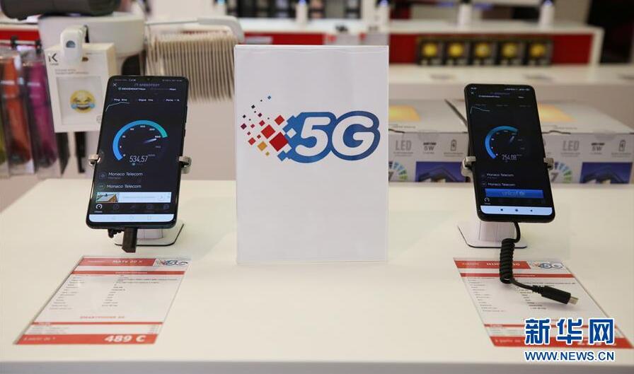モナコテレコムの営業(yè)所で撮影された5G規(guī)格対応のスマートフォン「Mate20X」(左)と小米の「MIX3」。