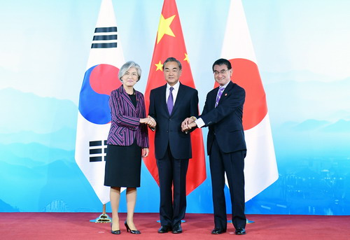 「三か國(guó)は協(xié)力の方向性をしっかりと把握し、常に正しい軌道に沿って前向きに発展するよう協(xié)力を推進(jìn)する必要がある。三か國(guó)は二國(guó)間関係をしっかりと守り、互いの核心的利益と重大な懸念を尊重し、生じた問(wèn)題に適切に対処する必要がある??茖W(xué)技術(shù)、ビッグデータ、人工知能(AI)、5Gなどの分野で協(xié)力を強(qiáng)化する必要がある。韓日が各國(guó)企業(yè)に公平、無(wú)差別、予測(cè)可能なビジネス環(huán)境を提供することを希望する。民意の土臺(tái)をしっかりと築き、スポーツ、映畫(huà)、高齢化など民衆(zhòng)に恩恵を及ぼす交流や協(xié)力の実施に力を入れる必要がある。自由貿(mào)易をしっかりと守り、開(kāi)放型世界経済を構(gòu)築し、域內(nèi)包括的経済連攜(RCEP)交渉の年內(nèi)妥結(jié)に向けてしかるべき役割を果し、中日韓自由貿(mào)易協(xié)定(FTA)交渉の新たな段階的進(jìn)展を推進(jìn)する必要がある。『三か國(guó)+X』協(xié)力を推進(jìn)し、高い質(zhì)で『一帯一路』を共同建設(shè)する必要もある」と表明した。