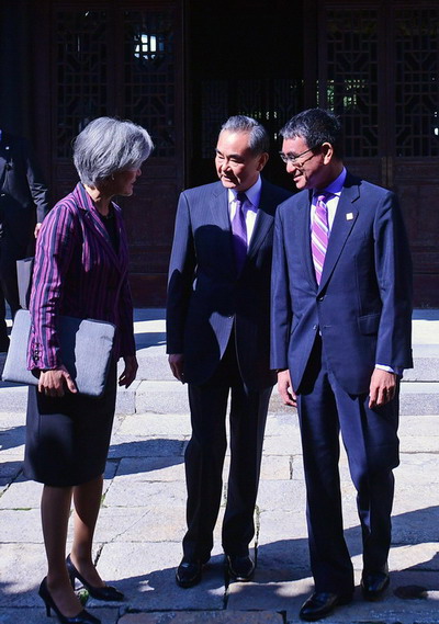 「中日韓は一衣帯水の隣國だ。皆が仲良く付き合い、互いに見守り助け合うことを望んでいる。われわれは最近日韓関係に生じた困難を注視しており、日韓雙方が三か國外相會(huì)談を契機(jī)に二國間會(huì)談を行うことを支持する。われわれは日韓雙方が互いの懸念にしっかりと配慮し、意見の相違に建設(shè)的に対処し、問題解決の適切な方法を見出すことを希望する。中日韓は必ず一致団結(jié)して、さらに素晴らしい未來を迎えるよう三か國協(xié)力を推進(jìn)できると、われわれは信じている」と述べた。(編集NA)