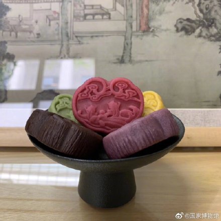 中國國家博物館はスイーツ商品「如意糕」を開発。これは同博物館が所蔵する「乾隆御題如意」の一部をスイーツの形としてデザインし、表面には水面を飛び跳ねるナマズ2匹のレリーフ模様をあしらっている。ナマズは中國語で「鯰魚(ニエンユィ)」で、毎年ゆとりがある生活ができるという意味の「年年有余(ニエンニエン ヨウユィ)」とかけてある。「如意糕」のデザインは伝統(tǒng)的だが、フレーバーのほうは今風(fēng)で、モカ味やブラックチョコレートチーズ味、クランベリー味、マンゴー味、抹茶蜜豆味など、味にうるさい若者向けになっている。