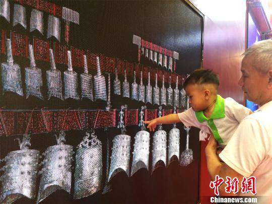 湖北省博物館総合館ホール體験エリアでは、來館者が鐘錘を持って振る動(dòng)作をすると、専門の感知裝置を通じて、LEDディスプレイに表示された編鐘がその動(dòng)きと共に揺れ動(dòng)き、音を発する。アプリ展示エリアでは、5Gスマホを操作して3つの観賞方法を選択できる。來館者がスマホで撮影すると、文化財(cái)を自動(dòng)識(shí)別し、関連情報(bào)が表示される。また、その場にいない利用者も、360度フルパノラマ畫面により、その場にいるような気分で博物館を見學(xué)できる。