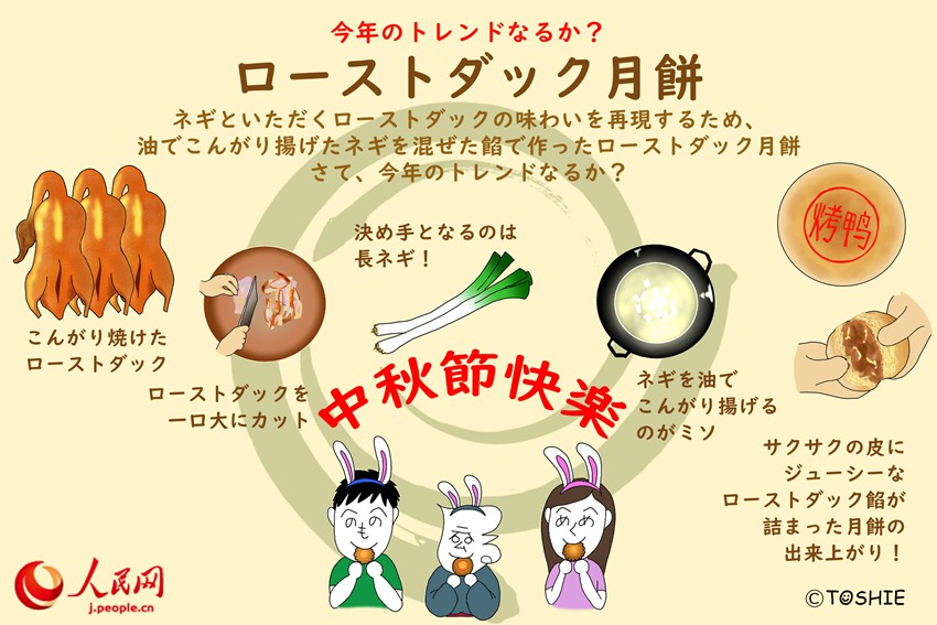 中國(guó)では毎年トレンドとなる餡があり、以前は大手メーカーがそうしたトレンドを打ち出していたが、近年はネットショッピングサイトを通じて、地方の老舗メーカーやレストランが「奇抜な月餅」を打ち出し、それがトレンドとなることが多くなってきている。今年はこれまで塩漬け豚肉&筍味やチーズ&エビ味で話題となった老舗メーカーが「ローストダック月餅」を打ち出している。ネギと一緒にいただくローストダックの味わいを再現(xiàn)するため、油でこんがり揚(yáng)げたネギと絶妙なバランスで混ぜ合わせているという。さてそのお味はいかに?