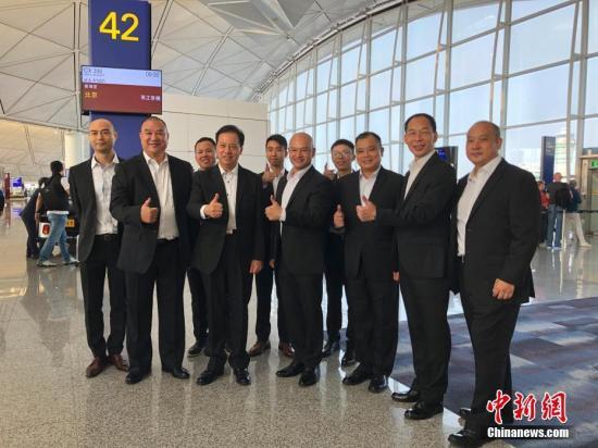 9月29日午前7時ごろ、中華人民共和國建國70周年記念式典への招待を受け、北京に向かう飛行機に乗るために香港國際空港に來た香港警察隊の代表10人(撮影?鐘欣)。