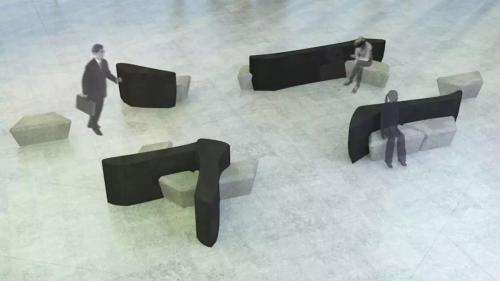 空港2階西南通路の「字畫伝承」は、漢字の字畫をモチーフにして機(jī)能的な椅子をデザインしてある。