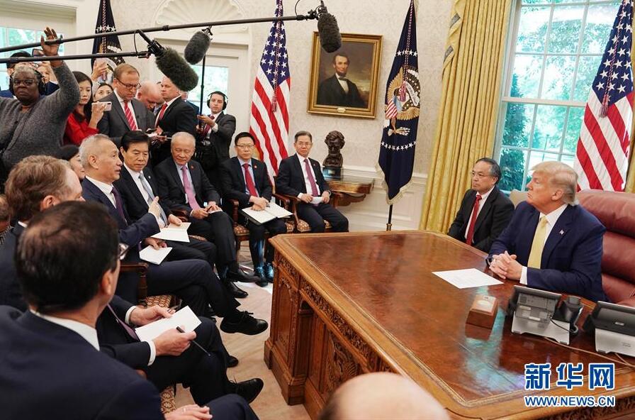 現(xiàn)地時間11日、米ホワイトハウスのオーバルオフィスで行われたトランプ大統(tǒng)領(lǐng)と劉鶴副総理の會談(撮影?劉傑)。