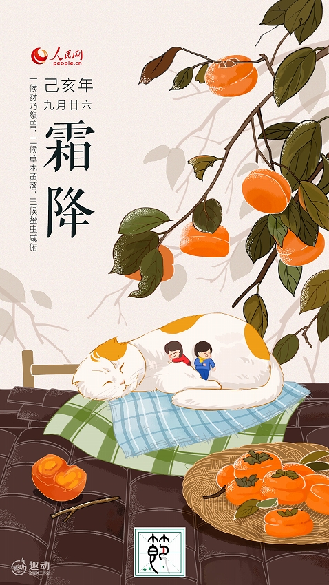 10月24日午前1時(shí)20分、「霜降」の節(jié)気が到來した?!杆怠工稀⒍墓?jié)気のうち18番目の節(jié)気で、秋季の最後の節(jié)気となる。
