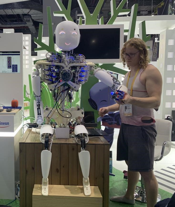 テクノロジー生活展示エリアでは、かわいい男の子のようなロボット?Roboyが展示されている。笑ったり、怒ったり、恥ずかしがったり、甘えたりできるRoboyの両手両足は、3Dプリント技術(shù)を利用して人間の骨格や筋肉、腱などを再現(xiàn)しているため、人間と酷似している。また、胸部には各種コンポーネントがぎっしり詰まっている。ドイツのインフィニオン?テクノロジーズのブースのスタッフは、「コンポーネントが見えるように展示しているのは、ロボットの內(nèi)部構(gòu)造の特徴を知ってもらうため」と説明する。Roboyは三輪車をこぐことができるほか、最近はアイスクリームの販売もマスターしたという。