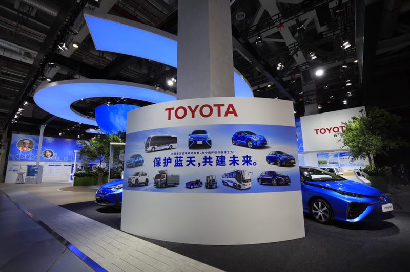第2回輸入博覧會に「水素と電力が共存するエネルギーマネジメント社會-マイナスエミッションが作る中國未來」をテーマに出展したトヨタのブース。