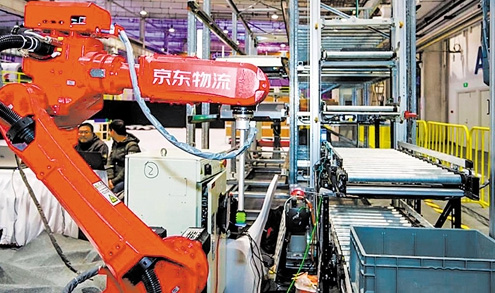 京東スマート物流6軸ロボットがスマートピッキングを行っている。