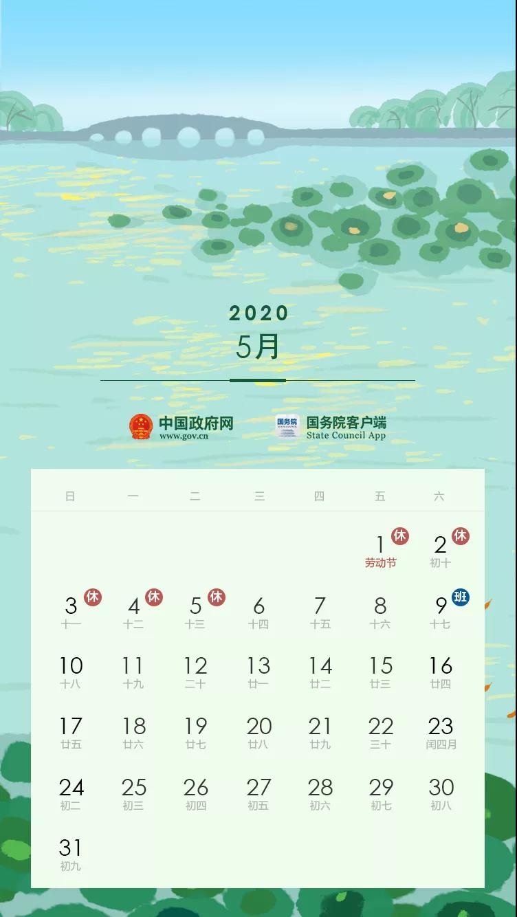 ?労働節(jié):5月1日から5日まで5連休。4月26日(日)、5月9日(土)は振替出勤日。