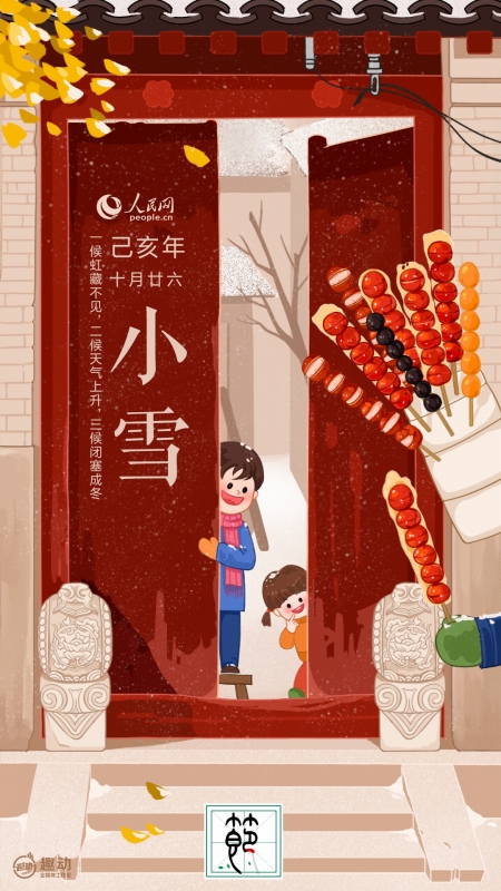 漬物。「小雪」の頃になると、霜が降りやすくなる。霜に覆われた野菜はしんなりしてしまうため、人々は通常この時期の野菜を漬物し、新鮮な野菜が手に入りにくくなる冬場に食べる。通路には漬物を入れた大きな漬物かめが並べられ、軒下には干した野菜がずらっとぶら下がっている。こんな光景はいずれも、暖かな冬の日のイメージとして、私たちの脳裏に刻まれている。