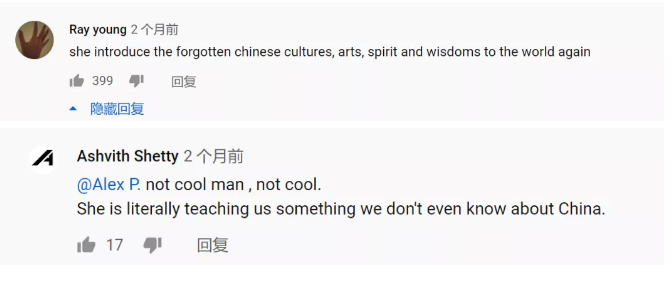 李さんの文房四寶の動畫には、外國人から、「彼女は、忘れられていた中國の文化、蕓術(shù)、知恵を、世界に再び発信してくれている」、「彼女のおかげで、私たちは中國のことをちゃんと理解していないことが分かった」などのコメントを寄せている。