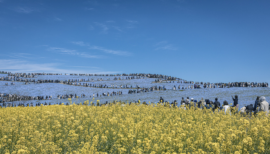 同じ時(shí)期、栃木県足利市にあるあしかがフラワーパークでは、藤の花が見ごろを迎える。滝が流れ落ちるようなその光景は思わず息を呑むほどの美しさ。紫色の藤だけでなく、白い藤もあり、風(fēng)が吹いて藤の花が揺らぐ様子は可憐で美しい。また茨城県の國営ひたち海浜公園でも園內(nèi)の隨所で咲き誇るネモフィラの澄んだブルーの花があたり一面を覆い、幻想的な風(fēng)景で人々を魅了する。