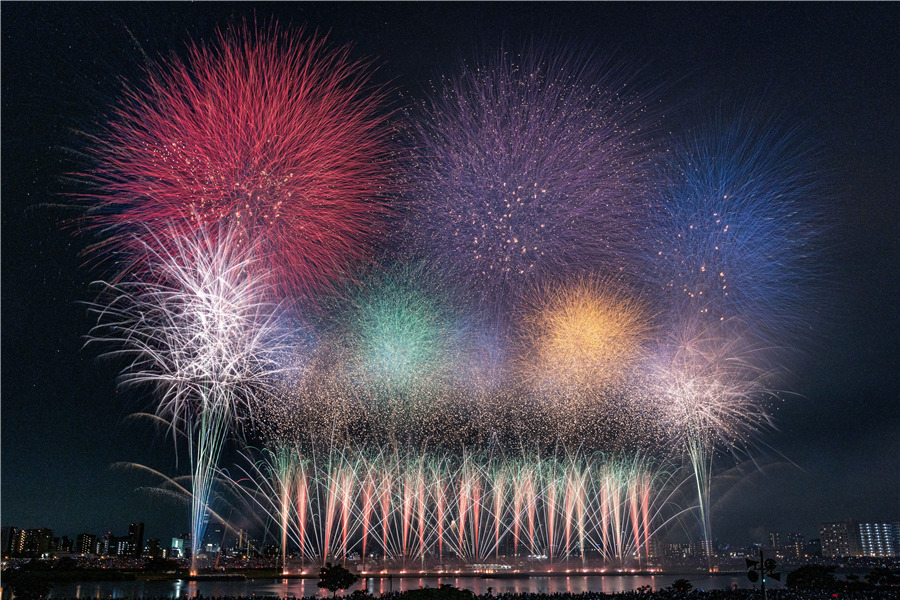 令和元年7月20日夜7時(shí)半、第41回足立の花火が時(shí)間通り開催。日本の花火を見るのはこれが初めてで、テンションが上がった。草の生えた川辺に座り、友達(dá)と一緒に酒を飲みながら、美しい花火を見るというのは、これ以上ない幸せな時(shí)間になる。せっかくこの世に生まれのだから、楽しく生活したほうがいい。人生は花火のようにはかない??啶筏い长趣猡ⅳ毪猡筏欷胜い?、どんなに大変であっても、自分らしく生き、経験をしっかり積んで、一番良い時(shí)に、才能を花火のように一気に開花させることができれば、悔いのない人生になるだろう。