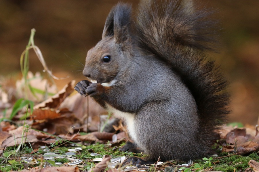 北海道の森の妖精、エゾリス。動(dòng)物を愛する北海道の人々のおかげで、北海道大學(xué)苫小牧研究林のエゾリスたちは人間をまったく怖がらず、秋色に色づいた森の中でご馳走を頬張っていた。(作者:小梟。撮影場(chǎng)所:北海道?北海道大學(xué)苫小牧研究林)