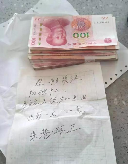 山東省日照市で1月31日、清掃作業(yè)員の帽子をかぶった年配の男性が東港公安分局西湖派出所に紙の包みを置いて立ち去った。派出所の職員が包みを開くと、中には現(xiàn)金1萬2千元(日本円で約18萬6千円)が包まれており、1枚のメモに「急ぎ武漢に屆けて欲しい。白衣の天使たちの頑張りに少しでも役に立ちたい。東港の清掃作業(yè)員より」と記されていたという。(編集TG)