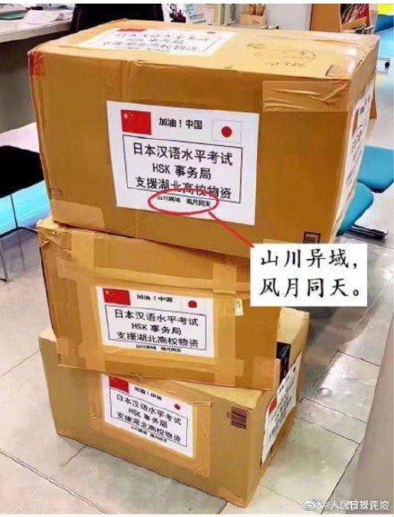 新型コロナウイルスの感染による肺炎との戦いを前に、日本を含む世界各國の民衆(zhòng)が中國國民と共に立ち上がっている。このほど日本から寄付された物資の寫真がSNS(ソーシャルネットワーキングサービス)上で反響を呼んだ。物資の包裝箱に「山川異域、風月同天」(山川、域を異にすれども、風月、天を同じうす)という8つの漢字が記されていたからだ。中日両國は共に漢字文化圏に屬し、日本の民衆(zhòng)はこの短い數(shù)文字で特別な溫かみと感動を伝えた。(文:孔鉉佑?駐日本中國大使。人民日報掲載)