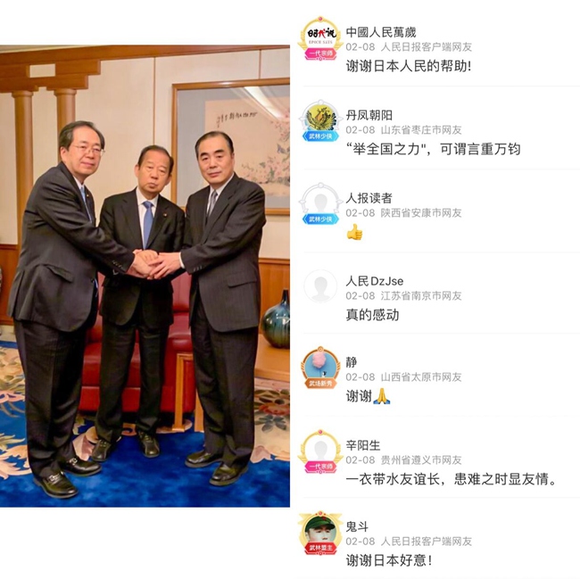 在日本中國大使館の公式サイトによると、孔鉉佑駐日大使は7日、日本の與黨自民黨の二階俊博幹事長と公明黨の斉藤鉄夫幹事長と會(huì)談した。両幹事長はともに、「日本は國を挙げて、中國と共に感染と闘う用意がある」との意を示した。このニュースのコメント欄には、中國のネットユーザーから「『國を挙げて』というのは非常に重い言い方だ」や、「日本人の支援に感謝する」、「一衣帯水の友好関係は長きにわたり、困難にある時(shí)にこそ友情が示される」、「中日の何世代にもわたる友好を願(yuàn)う」といったコメントが続々と寄せられた。