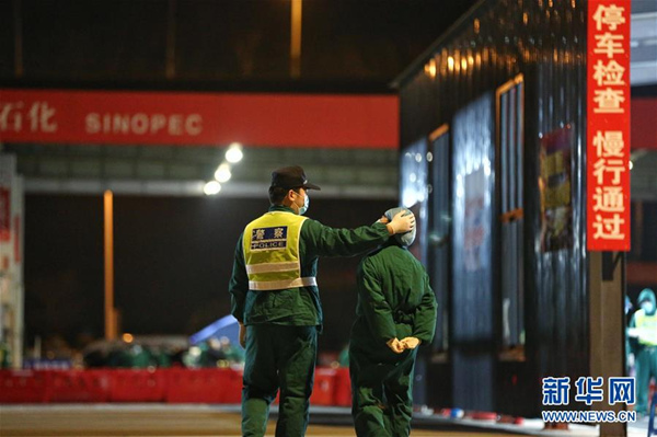 浙江省の舟山跨海大橋金塘高速通路防疫検査所では2月10日夜、夫の楊晨華さんと妻の方夢(mèng)霞さんが勤務(wù)交代の合間にしばしの「逢瀬」を楽しんでいた。舟山市で新型コロナウイルス感染による肺炎が生じて以來、舟山市公安局定海分局の警官である楊晨華さんは、感染予防?抑制業(yè)務(wù)に攜わることとなり、最前線で泊まり込み勤務(wù)をしている。一方、醫(yī)療スタッフとして働く妻の方夢(mèng)霞さんは病院內(nèi)での日常業(yè)務(wù)のほかに、毎週1回、金塘防疫検査所に赴き、そこを通過する人々の體溫測(cè)定をする當(dāng)直を擔(dān)當(dāng)している。これがこの夫婦にとって、感染が生じてから週にたった一度の「逢瀬」の機(jī)會(huì)となっている。しかも金塘検査所での2人の當(dāng)直時(shí)間は必ずしも一致している訳ではないので、なにか言いたいことがあったとしても、勤務(wù)交代の合間に慌ただしく言葉を交わすくらいしかできないのだという。
