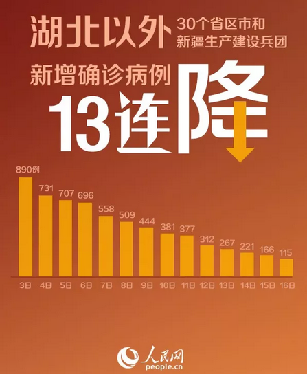 湖北省以外の新たな新型肺炎感染者は13日連続で減少傾向
