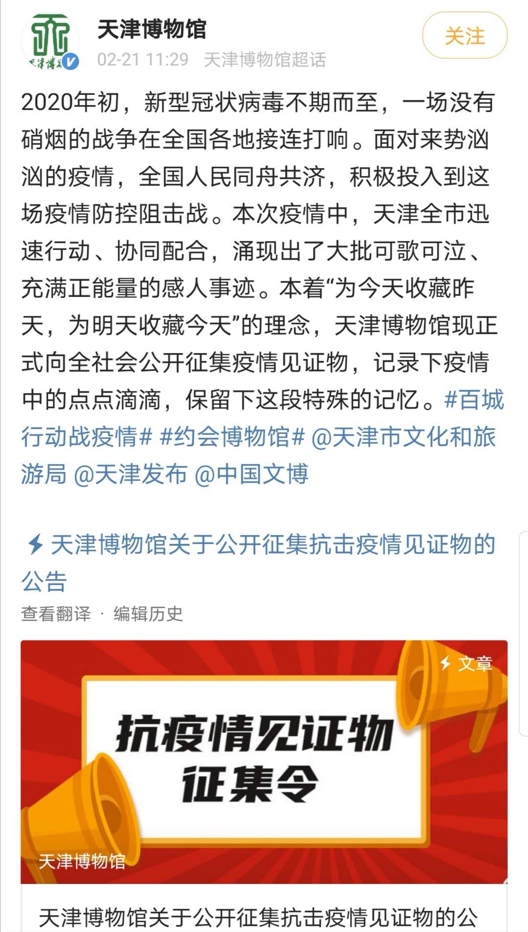 天津博物館のウイルスとの闘いのコレクション募集を見ると、「今日のために昨日を、明日のために今日をコレクションしよう」をコンセプトにしている。ウイルスとの闘いをめぐるエピソードを記録し、この特殊な時(shí)期に起きたことを記憶するために、社會(huì)に関連のコレクションを募集しているという。(編集KN)