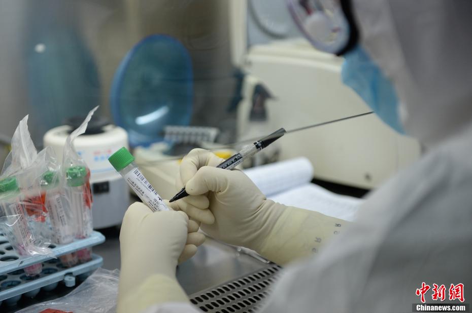 正式にPCR検査を始める前、3級(jí)防護(hù)服を著用した醫(yī)師が咽頭ぬぐい検體の入った試験管を取り出し、被験者の情報(bào)を詳細(xì)に確認(rèn)しパソコンに入力し、検體の不活性化処理を行い、さらにウイルス感染のリスクを減らす。