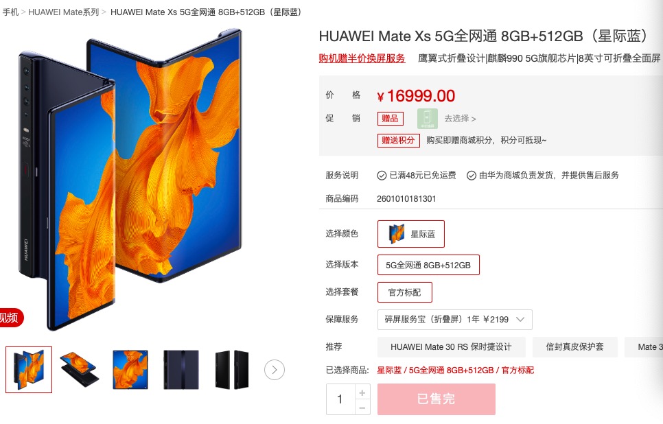 5日午前10時8分、華為(ファーウェイ)は価格1萬6999元(1元は約15.2円)の折りたたみスマートフォン「Mate Xs」を発売した。初代「Mate X」の発売時の光景「數(shù)秒で完売」が今回も出現(xiàn)した。新機種を手に入れようと意気込んでいたユーザーは、「(インターネットの購入畫面で)購入ボタンも見ないうちに売り切れた。なんて難しいんだ」と肩を落とした。中新経緯が伝えた。