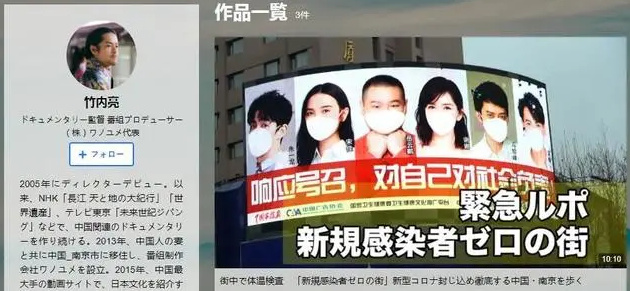 3月2日、「緊急ルポ 新規(guī)感染者ゼロの街 新型コロナ封じ込め徹底する中國(guó)?南京を歩く」というショートフィルムがYahoo!JAPANのトップページに掲載され、日本のフジテレビやテレビ朝日、TBSなど多くのメディアが特集を組み、監(jiān)督を務(wù)めた竹內(nèi)亮氏に中國(guó)の感染拡大防止について話を聞いている。