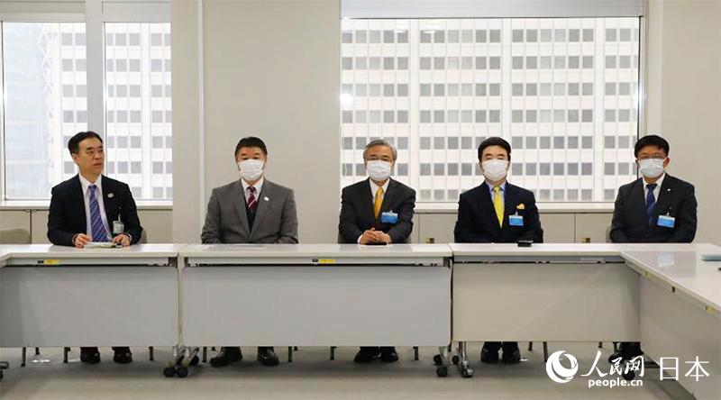 東京都庁へのマスク寄贈(zèng)式に出席した在日本中國(guó)大使館の宋耀明経済商務(wù)公使(寫真中央)、在日中國(guó)企業(yè)協(xié)會(huì)の王家馴會(huì)長(zhǎng)(寫真右から2番目)、中國(guó)建設(shè)銀行東京支店の解陸一支店長(zhǎng)(寫真一番右) 。(畫像は中國(guó)建設(shè)銀行東京支店が提供)