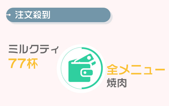 1人で1回にミルクティ77杯を注文 1回で焼肉「全メニュー」を注文