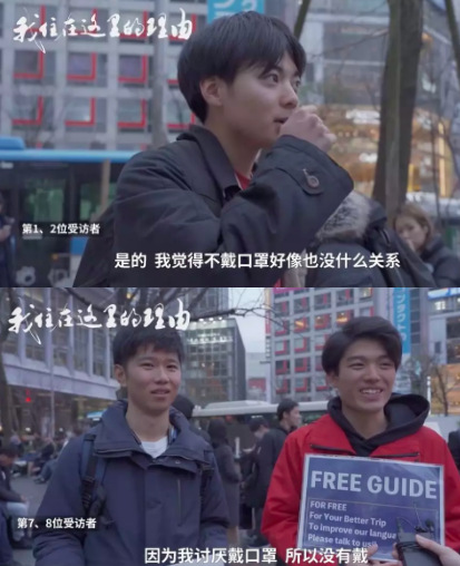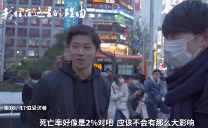 新型コロナウイルス感染拡大が最も深刻な時期に、「私がここに住む理由」では、日本の街中の若者をインタビューしている。中には、「マスクは好きじゃないので著用していない」という若者もいれば、「著けても、著けなくても、感染する人はするし、しない人はしない」と話す若者もいる。竹內氏はそのような狀況を危懼し、微博(ウェイボー)で何度も、「日本の防疫対策には手落ちがある」と指摘している。