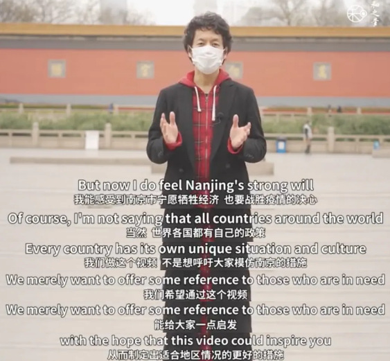 その最後の部分で、竹內氏は、「今回南京市の感染防止対策を見て、正直驚いた。ここまでやるのかと。たとえ経済を犠牲にしてもなんとしてもウイルスに打ち勝つんだという強い意思を感じた。もちろん、世界各國の國の制度が違うので、南京市をまねしてほしいと言いたいわけではなく、この動畫を通して、皆さんがそれぞれの國に適したよりよい対策を考えるヒントになればと思い、この動畫を製作した」と述べている。(編集KN)