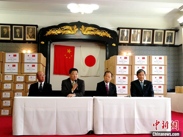 孔鉉佑駐日大使の委託を受けて寄贈式に出席した何振良駐大阪総領(lǐng)事はスピーチで「中國で新型コロナウイルスによる肺炎が発生すると、日本の官民各界は直ちに支援の手を差し伸べた。中國側(cè)はこれを心に深く刻んでいる」と表明。