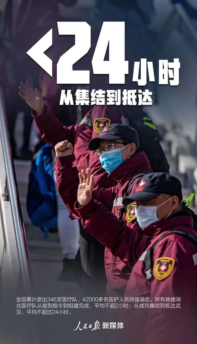 全國(guó)から計(jì)346の醫(yī)療チーム、約4萬(wàn)2千人の醫(yī)療従事者が湖北省に支援に赴いた。全ての湖北支援醫(yī)療チームは、指示を受けてから平均2時(shí)間以內(nèi)に組織體制を整え、メンバーが集結(jié)してから平均24時(shí)間以內(nèi)に武漢に到著するという離れ業(yè)をやってのけた。