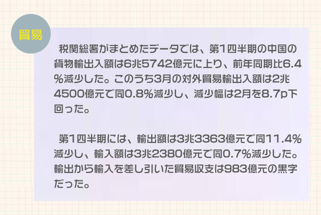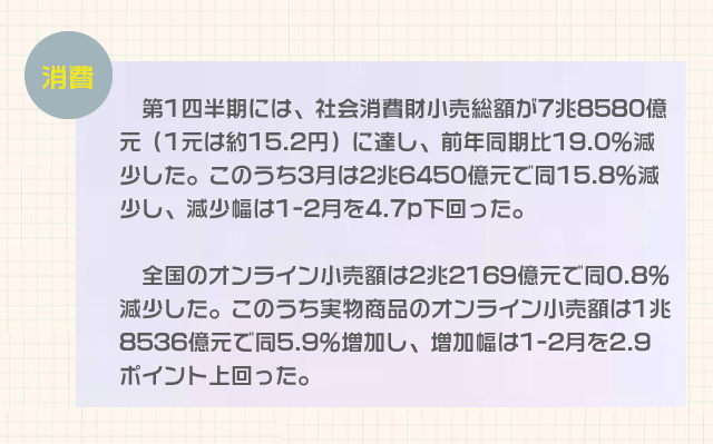 國家統(tǒng)計局は17日に今年第1四半期の國民経済データを発表した。新型コロナウイルスによる肺炎がもたらした厳しい試練に直面したが、統(tǒng)計をみると同期の基本的な國民生活は著実に保障され、3月には主要経済指標の低下幅が目に見えて縮小したことがわかる。