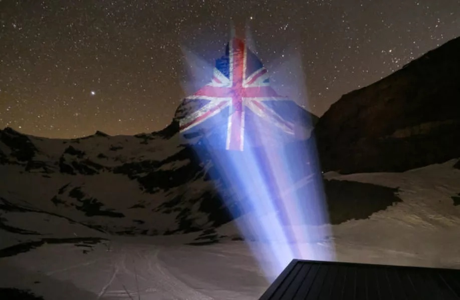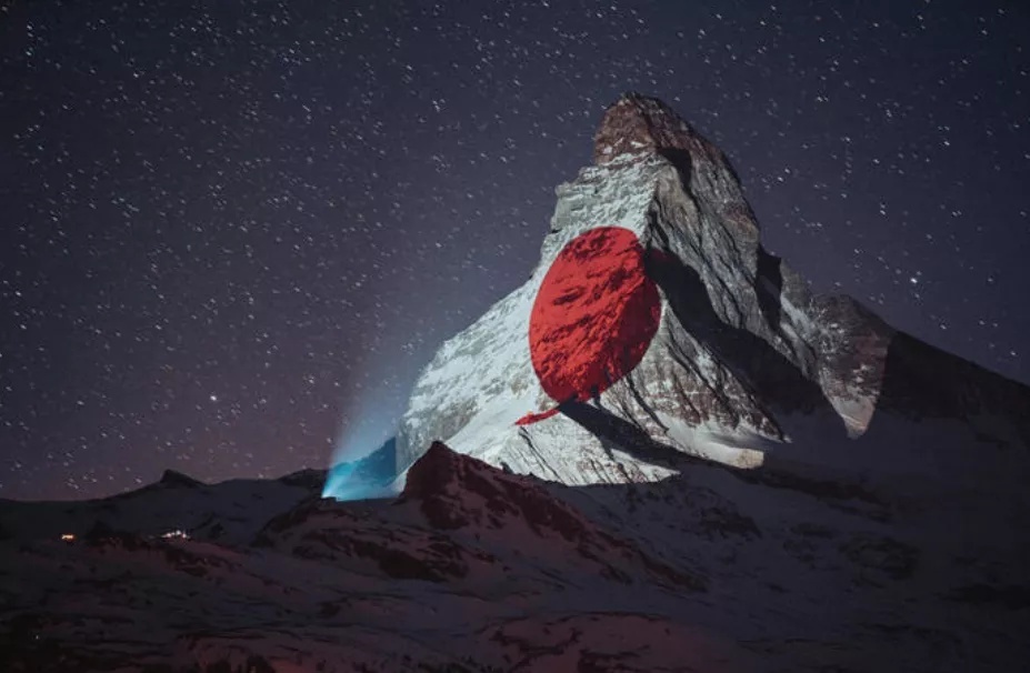マッターホルン山頂に映し出された五星紅旗は、幅が1キロメートル以上。ツェルマット観光局公式ウェブサイトからライブ配信で視聴することができる。