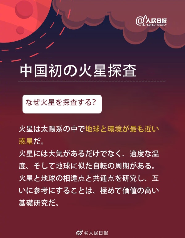 専門家によると、火星の研究は人類に大きな啓発をもたらす?;鹦扦咸栂丹沃肖堑厍颏拳h(huán)境が最も近い惑星だ。火星には大気があるだけでなく、適度な溫度、そして地球に似た自転の周期がある?;鹦扦鹊厍颏蜗噙`點(diǎn)と共通點(diǎn)を研究し、互いに參考にすることは、極めて価値の高い基礎(chǔ)研究だ。