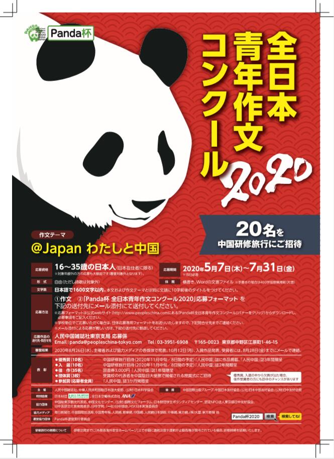 「Panda杯全日本青年作文コンクール2020」募集開始