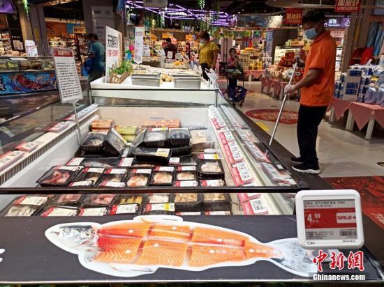 6月13日、北京市豊臺(tái)區(qū)のスーパーではサーモンが棚から姿を消した。(撮影?張宇)