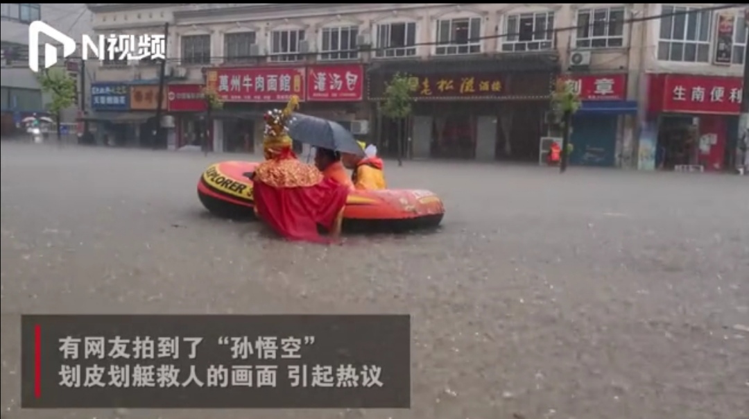 孫悟空現(xiàn)る?冠水で立ち往生の市民をボートで救助 湖北省 (2)