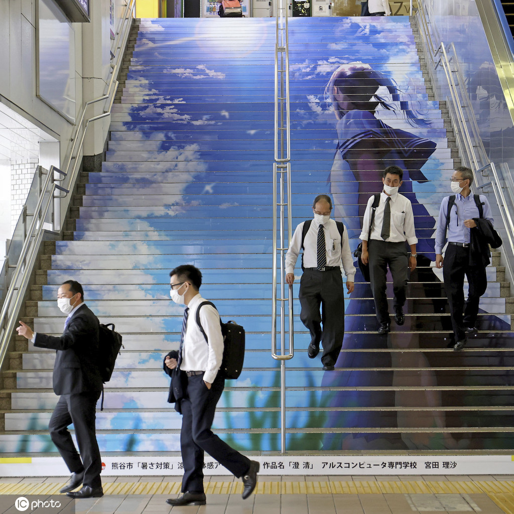 日本埼玉県のJR熊谷駅の階段が、「普段とは異なる」色彩に染め上げられた。この「階段アート」は、コンピューター を?qū)煿イ工雽熼T學(xué)校生の宮田理沙さんが描いた作品。宮田さんが創(chuàng)作した作品はアニメ風(fēng)のイラストで、ブルーの背景が乗客に「涼しさ」を感じさせている。(編集KM)