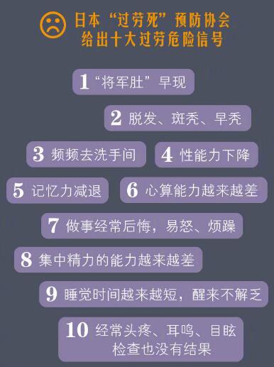 ◆日本の過労死予防協(xié)會(huì)による過労の10の危険信號(hào)