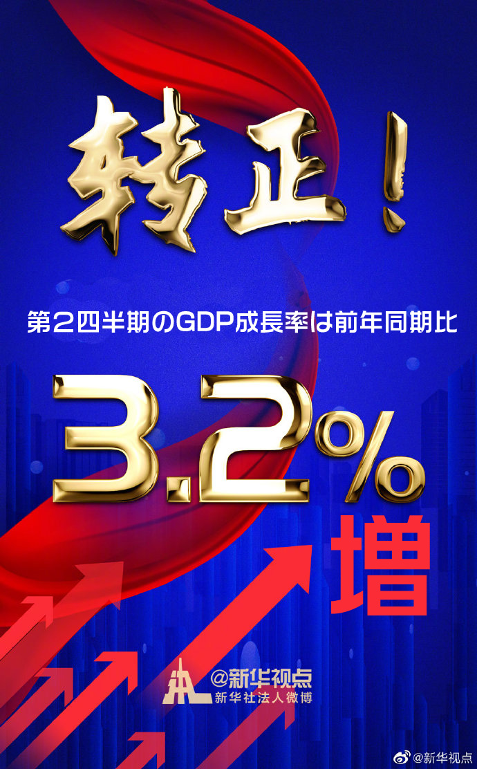 中國(guó)経済は第2四半期にプラス成長(zhǎng)回復(fù)、同3.2%増