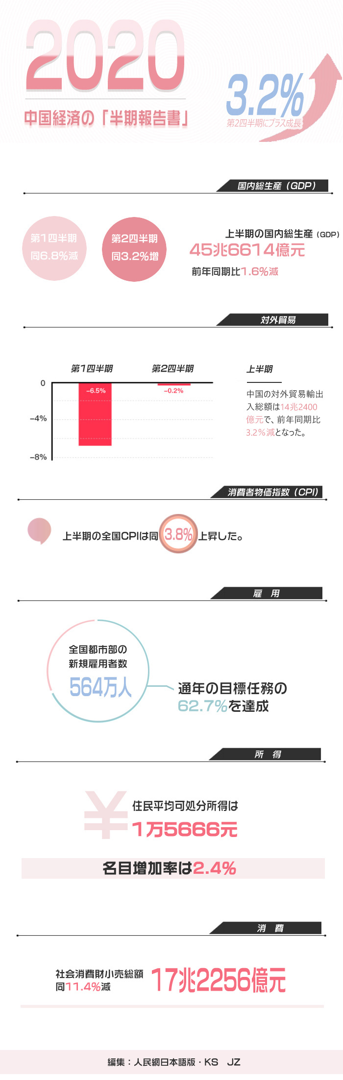 中國國家統(tǒng)計(jì)局は7月16日、上半期の中國経済データを発表した。上半期の中國経済は、初めは減速したものの後に上昇し、第2四半期の経済成長率はマイナスから一転してプラス成長を達(dá)成した。