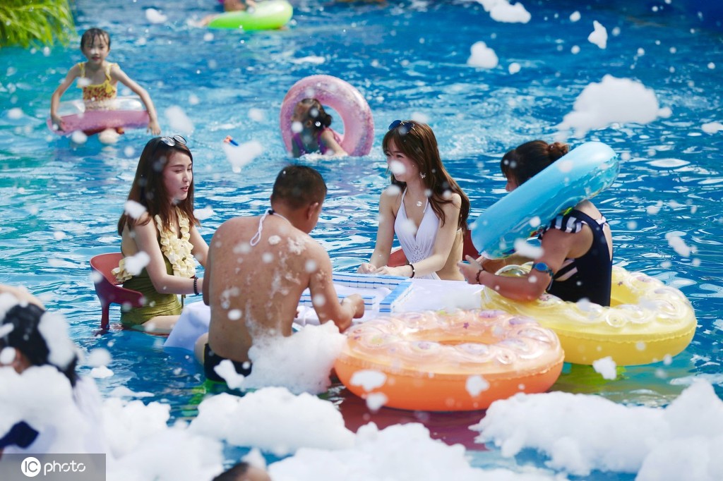 水に浸かりながら麻雀納涼 3日連続で高溫オレンジ警報発令の重慶市 (2)