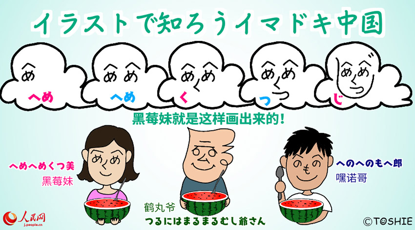 人民網(wǎng)ではもっと身近なスタイルで今どきの中國を読者の皆さんに知ってもらうため、「つるにはまるまるむし爺さん」と「へのへのもへ郎」、「へめへめくつ美」の3人が流行語やカルチャー、時事問題など幅広いジャンルにおける「イマドキ」を紹介。中國ってこんな國なんだ!と興味を抱き、理解を深めるきっかけにしてみてください。