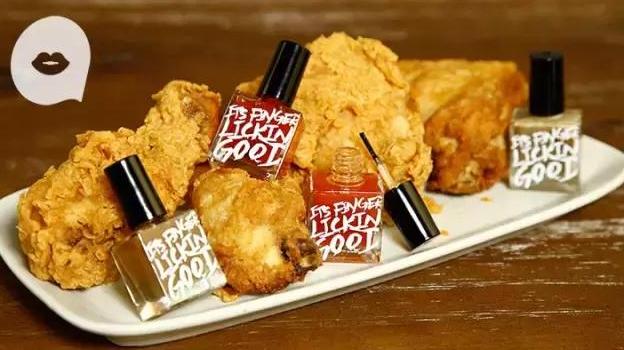 またKFCは、中國香港地區(qū)で「食べても大丈夫なマニキュア」を開発したこともある。このマニキュアには天然原料が使われており、爪に塗ってから5分待てば、なめても塗布効果が落ちないというものだった。このマニキュアには、「オリジナルチキン」と「スパイシーチキン」というケンタッキーならではの2種類の「フレーバー」があった。