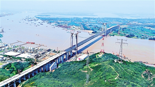中鉄大橋院が設計し、中鉄大橋局が建設を請け負う世界初の高速鉄道吊橋である連鎮(zhèn)鉄道五峰山長江大橋が順調(diào)に靜荷重試験に合格し、開通前の「健診」を完了した。今回の試験は主に列車の各車輪の作用を受ける大橋の応力や張力、変位などのパラメータのテストを行った。大橋の検収?引き渡しに根拠を提供するだけでなく、連鎮(zhèn)鉄道淮安?鎮(zhèn)江區(qū)間の年內(nèi)開通に向け基礎を固めた。寫真は建設中の連鎮(zhèn)鉄道五峰山長江大橋。経済日報が伝えた。(編集YF)