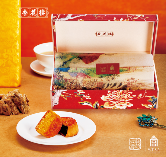 そんな「朕的心意·故宮食品」は今月13日、上海の老舗「杏花樓」と共同で、今年のギフト用月餅セット「錦盒?玉堂富貴」と「圓盒?富貴長(zhǎng)春」を発表した?!稿\盒?玉堂富貴」のケースはジュエリーボックスの形で、「圓盒?富貴長(zhǎng)春」のケースはまるいお菓子ケースのような形になっており、どちらも高級(jí)感ある仕上がりとなった。そのデザインは、清の第6代皇帝?乾隆帝の時(shí)代の「繡富貴長(zhǎng)春図軸」にインスピレーションを得たといい、非常に華やかでエレガントな雰囲気を漂わせている。
